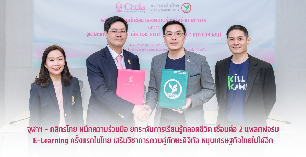 จุฬาฯ - กสิกรไทย ผนึกความร่วมมือ ยกระดับการเรียนรู้ตลอดชีวิต เชื่อมต่อ 2 แพลตฟอร์ม E-Learning ครั้งแรกในไทย เสริมวิชาการควบคู่ทักษะดิจิทัล หนุนเศรษฐกิจไทยไปได้อีก