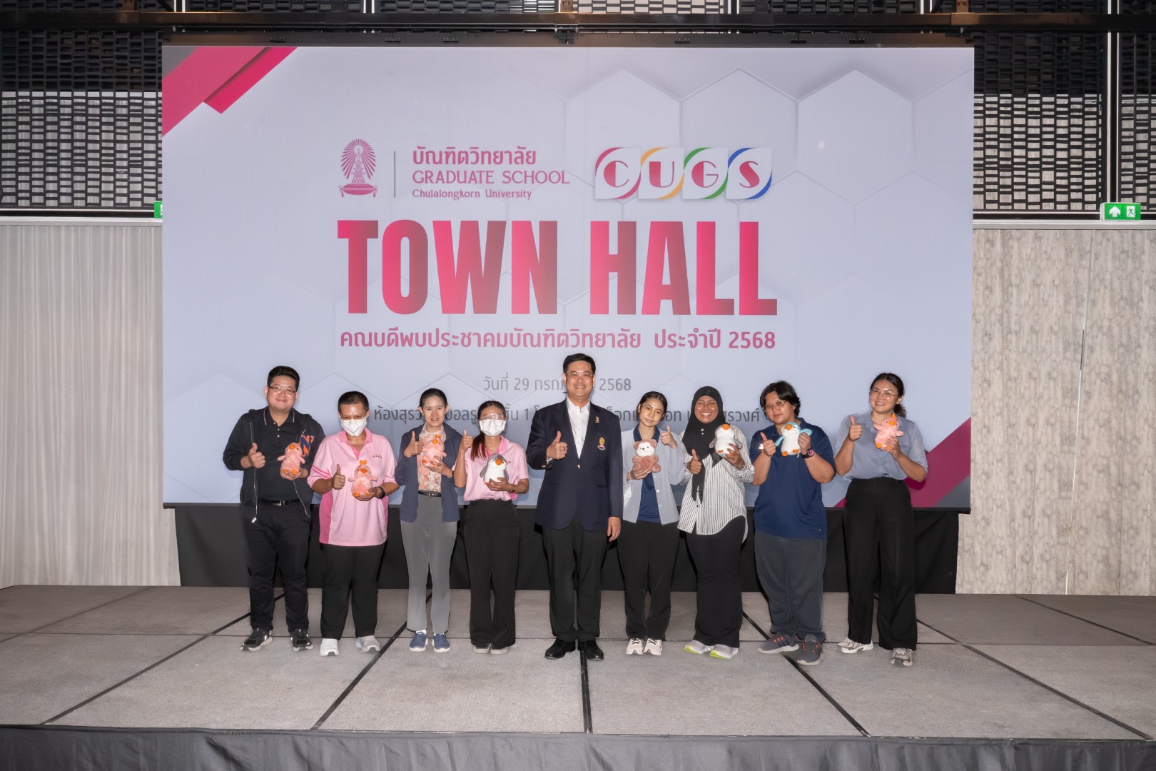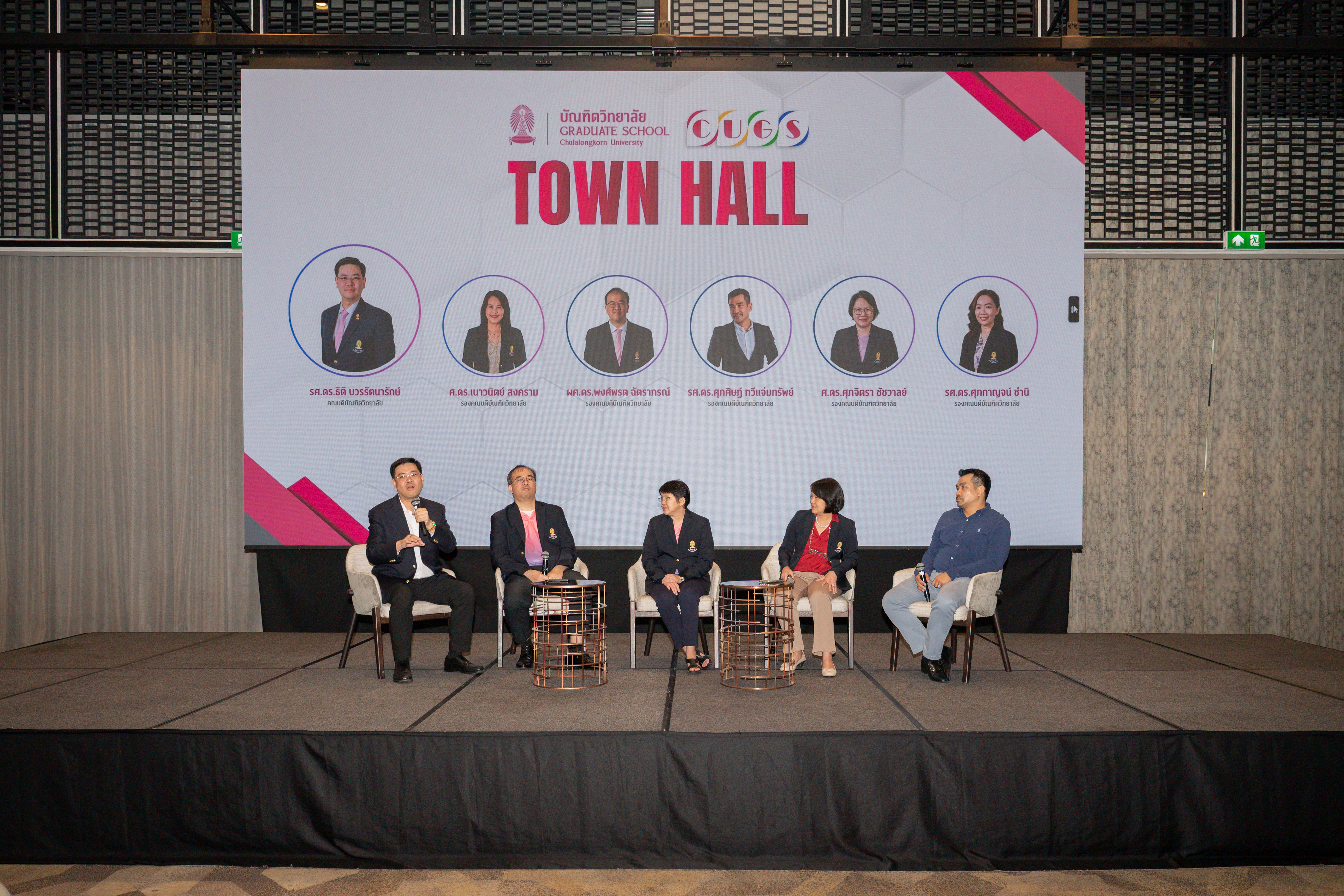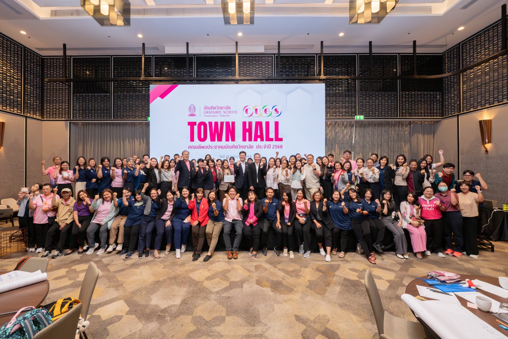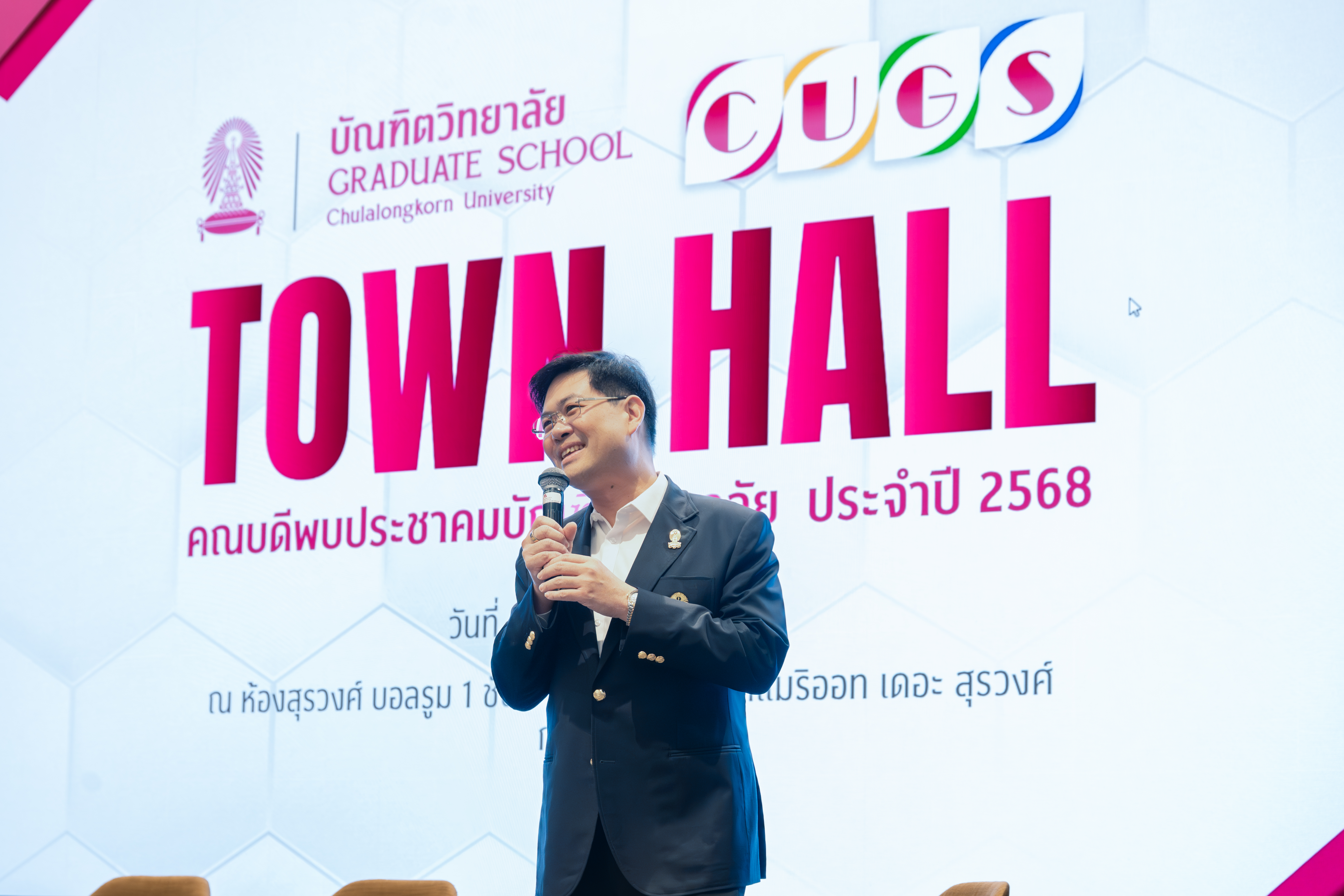 เมื่อวันที่ 29 กรกฎาคม 2568 บัณฑิตวิทยาลัยได้จัดงาน “Townhall คณบดีพบประชาคมบัณฑิตวิทยาลัย” ณ ห้องสุรวงศ์ บอลรูม 1 โรงแรมแบงค็อกแมริออท เดอะ สุรวงศ์ เพื่อรับฟังแผนยุทธศาสตร์การบริหารงานตามพันธกิจใหม่ของบัณฑิตวิทยาลัย จากรศ.ดร.ธิติ บวรรัตนารักษ์ คณบดีบัณฑิตวิทยาลัย และรับฟังการเสวนา เรื่อง “ทิศใหม่ องค์กรใหม่: ก้าวสู่การเปลี่ยนแปลงอย่างมั่นใจ” จากผู้บริหารบัณฑิตวิทยาลัย โดยมีรศ.ดร.ธิติ บวรรัตนารักษ์ คณบดีบัณฑิตวิทยาลัย และรองคณบดีบัณฑิตวิทยาลัย 4 ท่าน ร่วมเสวนาในประเด็นที่เกี่ยวข้องกับงานและพันธกิจที่เปลี่ยนแปลงไป ทั้งงานวิชาการ งานทุน งานกฎหมาย และงานการพัฒนานิสิตหลักสูตรสหสาขาวิชา ตลอดจนเรื่องสวัสดิการและการบริหารงานบุคคลภายใต้โครงสร้างใหม่ นอกจากนี้ยังมีการจัดกิจกรรมเสริมความรู้ ทักษะ และทัศนคติที่ดีให้แก่บุคลากร ผ่านกิจกรรมสานสัมพันธ์ ในหัวข้อ “เปลี่ยนให้พร้อม ปรับให้เป็น” และหัวข้อ “เตรียมพร้อม ก่อนเปลี่ยน” โดย อาจารย์อาทิตย์ ตันติโกวิทย์ และคณะ เป็นวิทยากรทำกิจกรรมครั้งนี้